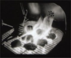 A loud "Pop" echoed through the jayhawker tower catacombs, as Tumnus shook up a bottle of the bubbly. "VB is gone...the catacombs are ours" he said. They would turn this place into a party pad. Suncat threw some coals on the Barbie...and SOT lit it up with his toy super soaker...modified into a flame-thrower. "Now all we need is some meat to cook," said Tumnus. Everyone turned and looked at Snuffy, who up until now had been sitting in the corner, minding his own business. Father and Son Tumnus quickly bum rushed Snuffy, rolled him, and then cut his head off. "The trophy will make a nice decoration," said Suncat, who promptly put the head up on the wall. With sharpened hooves, Tumnus and Son sliced up some Snuffalupugus patties, and threw them on the grill. SOT came tromping out of VB's kitchen, with some old blueberry muffins. "Those are old, throw them away" said Tumnus. The Snuffy burgers tasted delightful...even the Snuffy head on the wall ate a couple. With their bellies full, they all returned to 304 C...where they would just catch the opening bell and sloth.