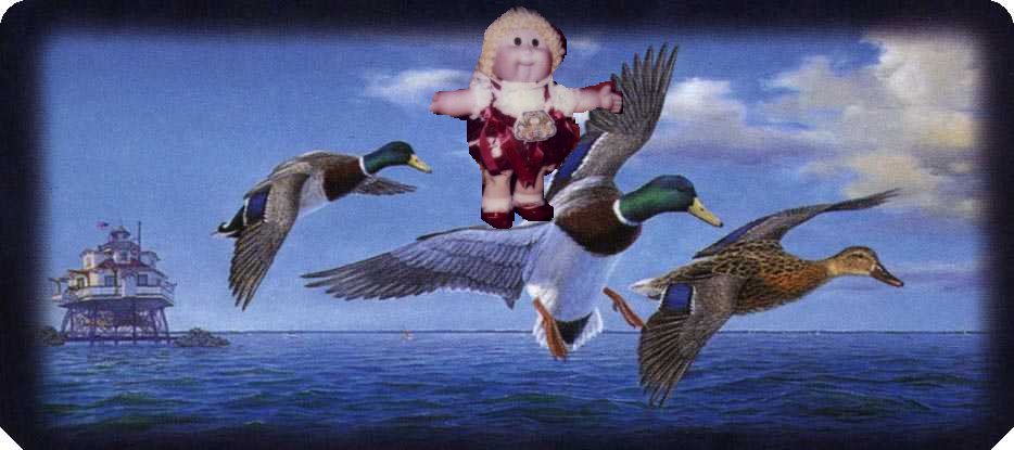 "Great Day in the Morning!" exclaimed Tobias, who couldn't believe his eyes. From out of the depths of Popeye's cesspool, waded a duck. Not just any duck, but an evolutionary masterpiece of a duck. a full three feet tall, green head, and an evil lust for blood. Popeye had abducted the duck as a duckling, and raised it in a BBQ grill, where it was kept in darkness. When feeding time came, he would put a cabbage patch kid with bread for a face in the grill. Soon the duck began to associate babies with bread, and it began to attack strollers as they passed by his pond. It then began to attack small children, and evolved at an unprecedented rate into a carnivorous bird. Now, all humans were potential meals, all but Popeye.