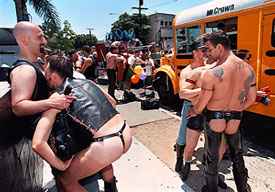 the street among the bare-butted participants in a Gay Pride Parade. "I'm